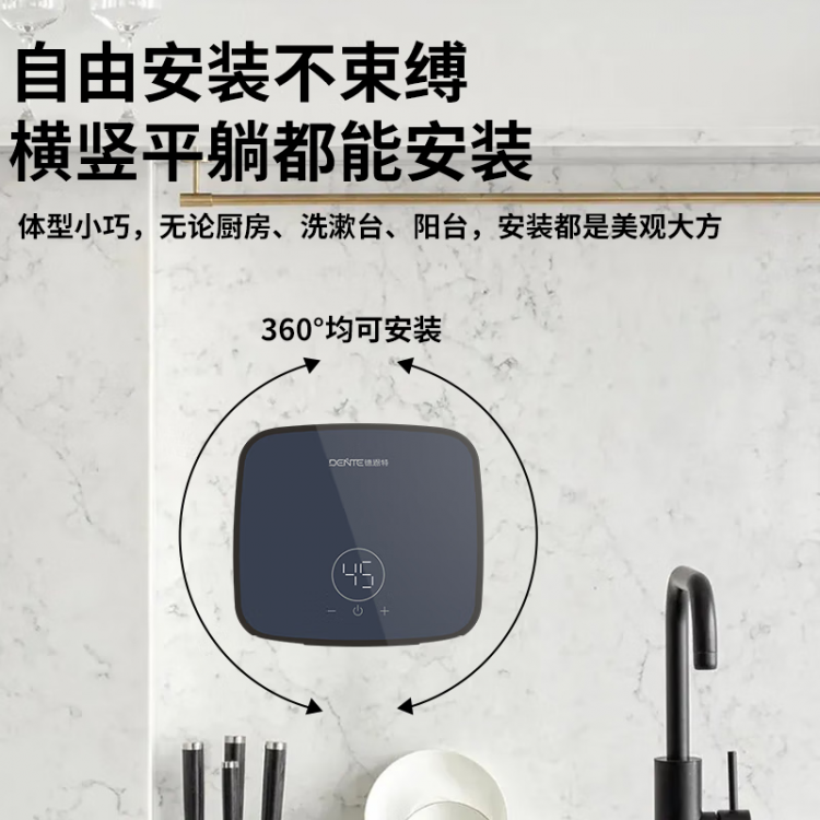 德恩特热水器 DTR-005/RTR-005黑色 6500瓦即热式小厨宝速热热水器即开即热可360度安装 CA