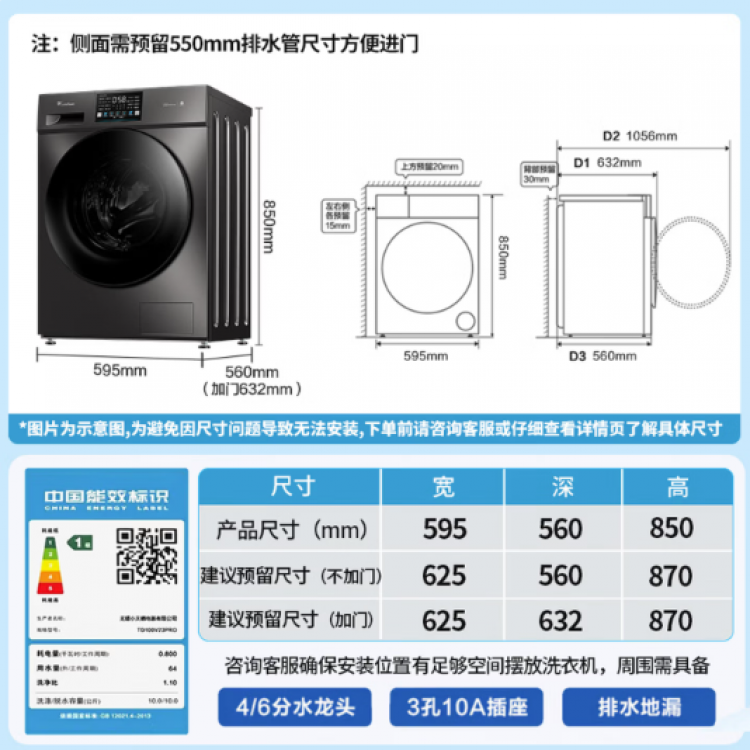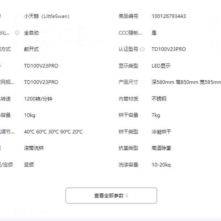 小天鹅(LittleSwan)TD100V23PRO 滚筒洗衣机全自动家用带烘干洗烘一体 10KG大容量超薄 MYX BM