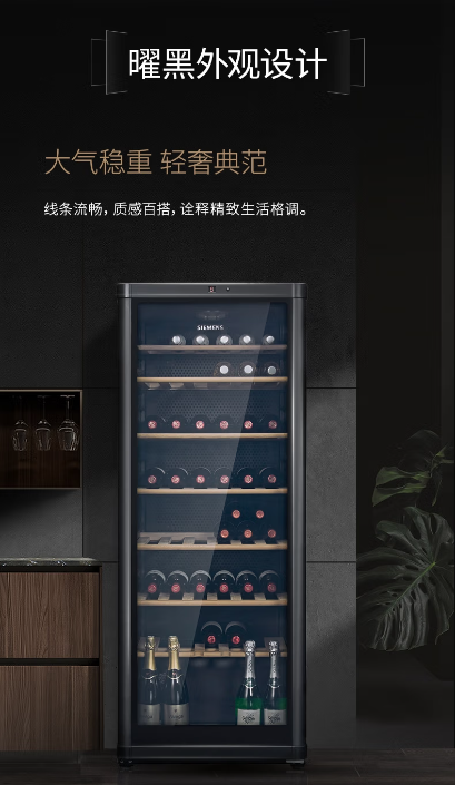 西门子(SIEMENS KW3MVB8TSC 315L酒柜 96瓶装红酒柜家用 葡萄酒柜恒温冷藏 进口橡木酒架 黑色 BJ