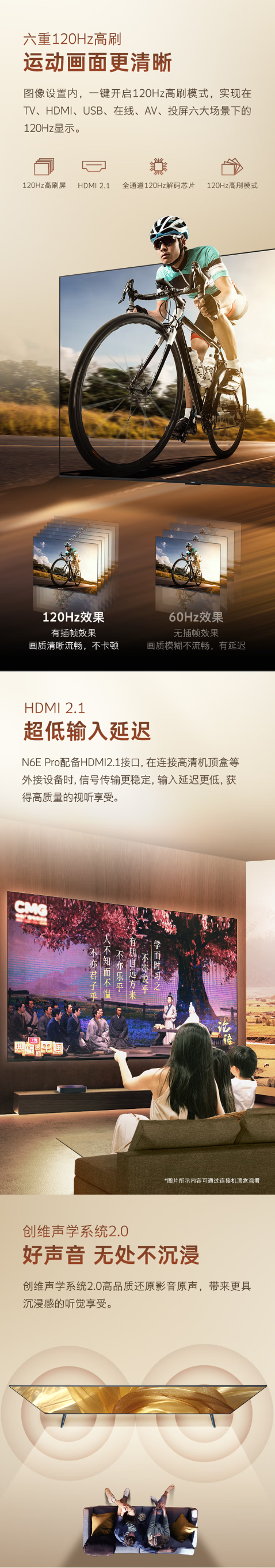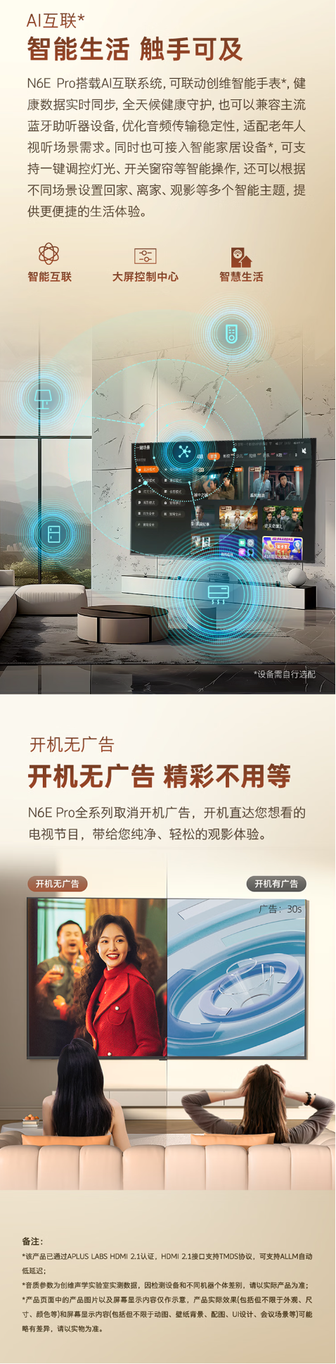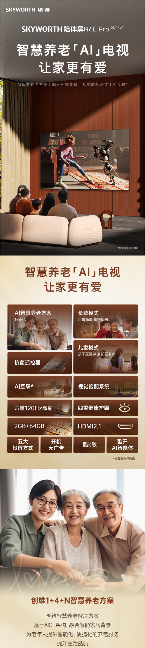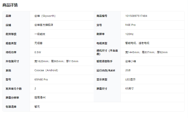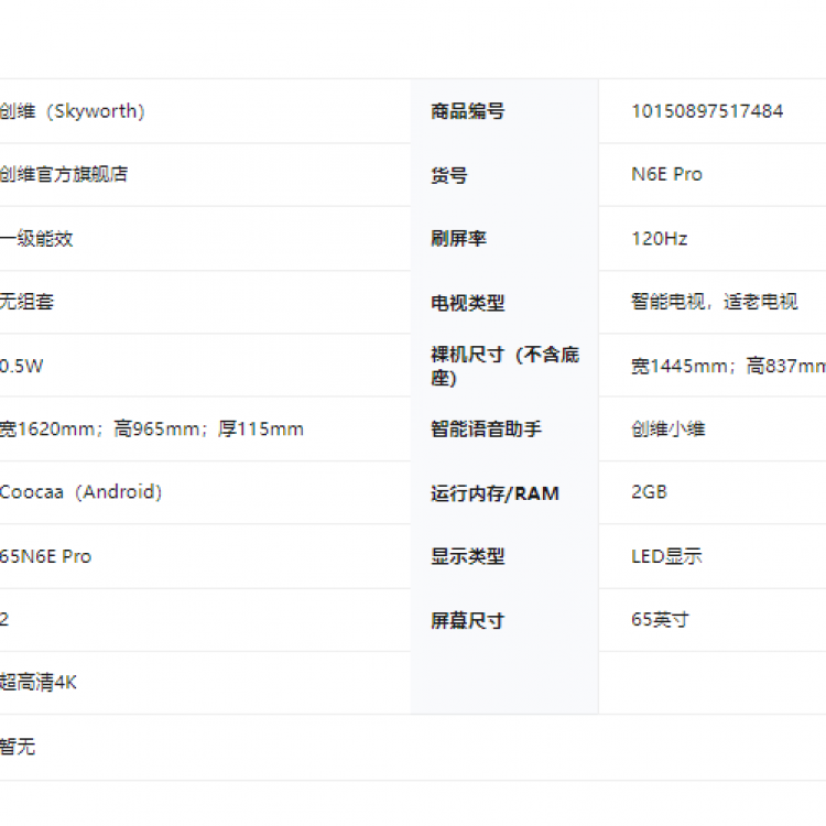创维电视N6E Pro 酷开AI智能体 视觉适配系统75-85英寸电视机 65英寸65N6E Pro BK