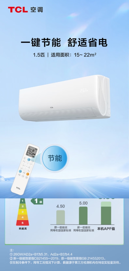 AHTCL 1.5匹 KFR-35GW/AD2a+B1 空调挂机 新一级能效 变频冷暖壁挂式挂机