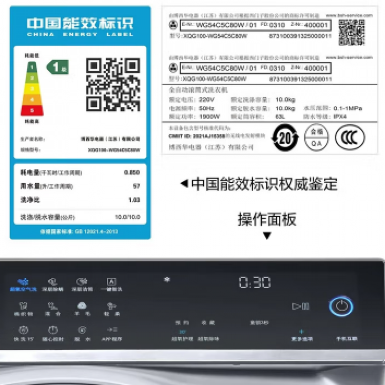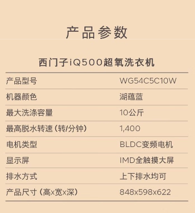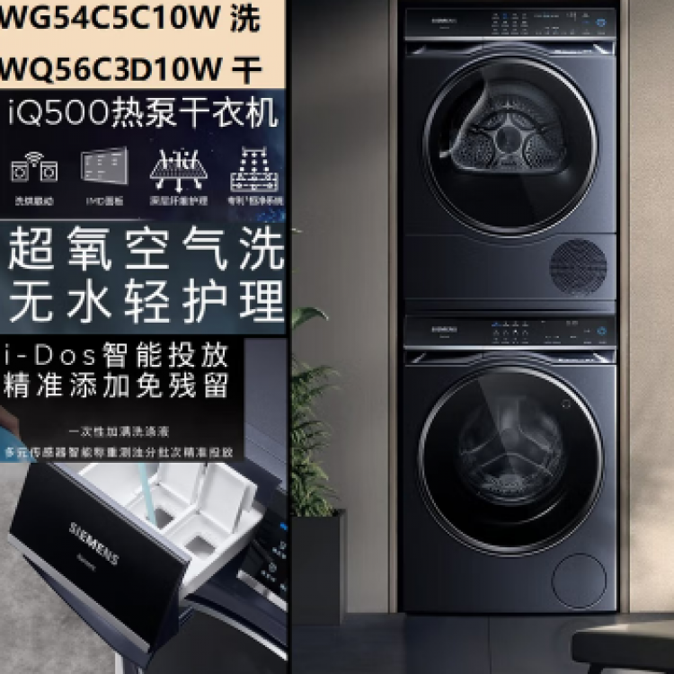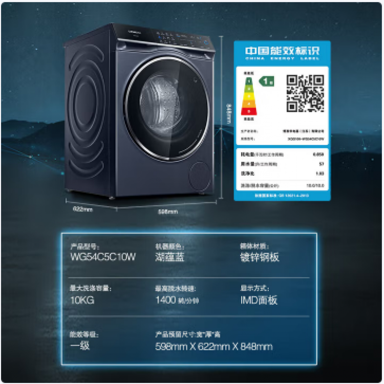 西门子超氧洗衣机 10kg 湖蕴蓝 WG54C5C10W 一级能效 智能洗涤 BJ