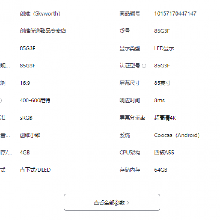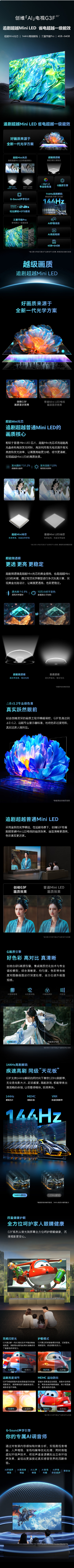 创维85G3F 追剧超越MiniLED 超能Mini光芯省电超越一级能效 AI秒懂语音 144Hz高刷护眼 智能投屏 4+64G 85英寸BN