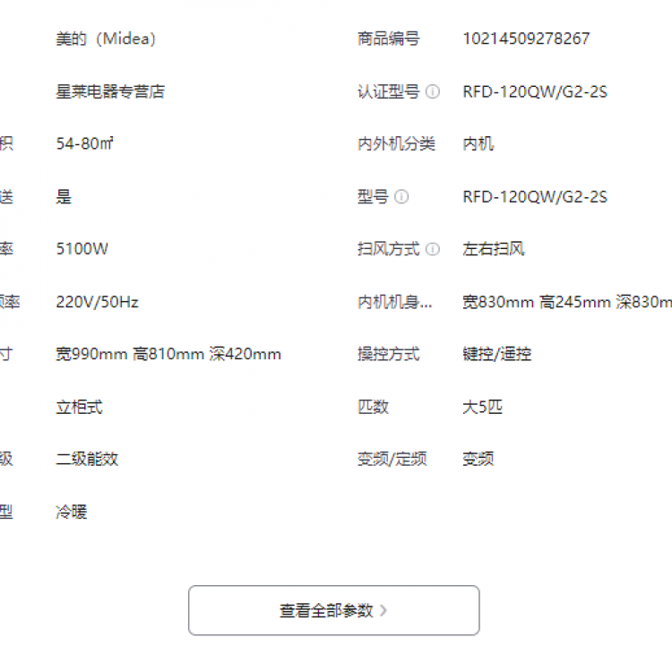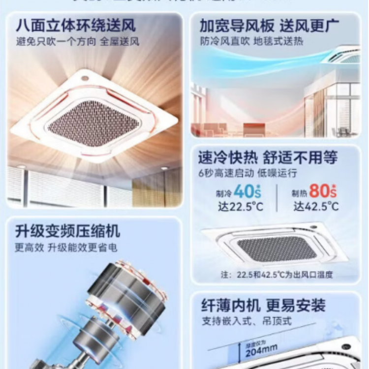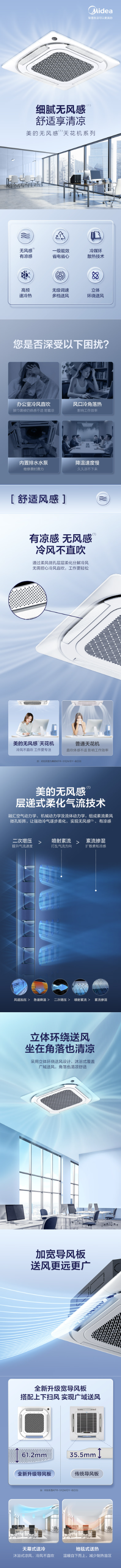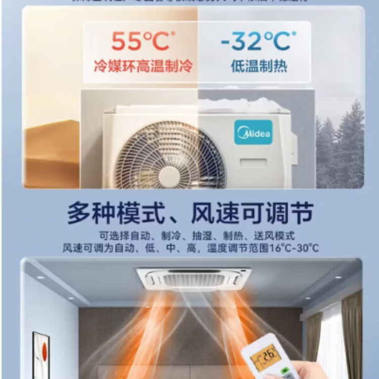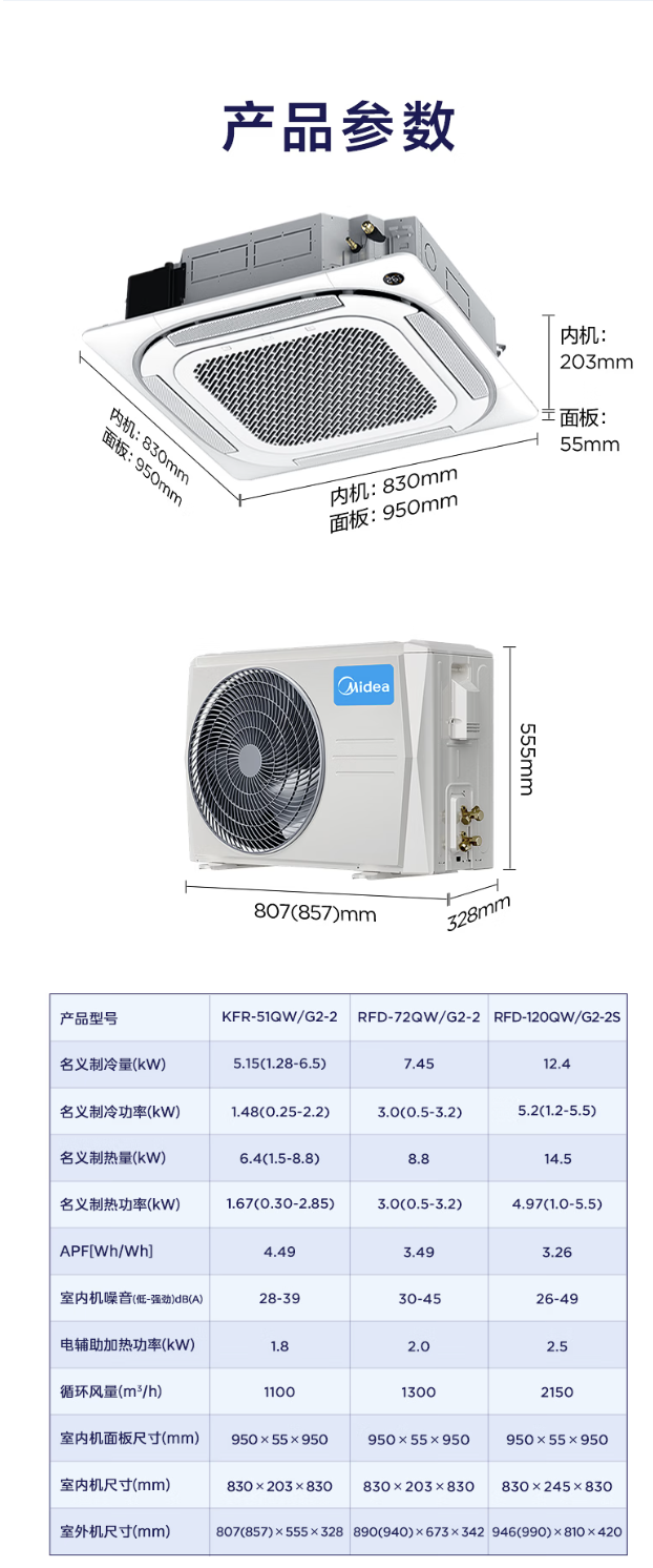 美的RFD-120QW/G2-2S天花机吸顶空调5匹无风感嵌入式一拖一 二级能效 变频冷暖380V BO