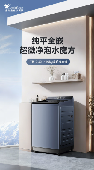 小天鹅 10KG TB10U2 波轮洗衣机全自动大容量家用纯平全嵌水魔方3代波轮防缠绕超高洗净比超微净泡 一级能效