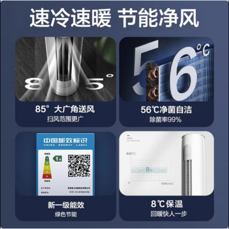 格力格力空调一级变频冷暖3匹2P节能立式客厅家用柜机云欢 KFR-72LW/NhGr1Bt 3匹皓雪白 BL