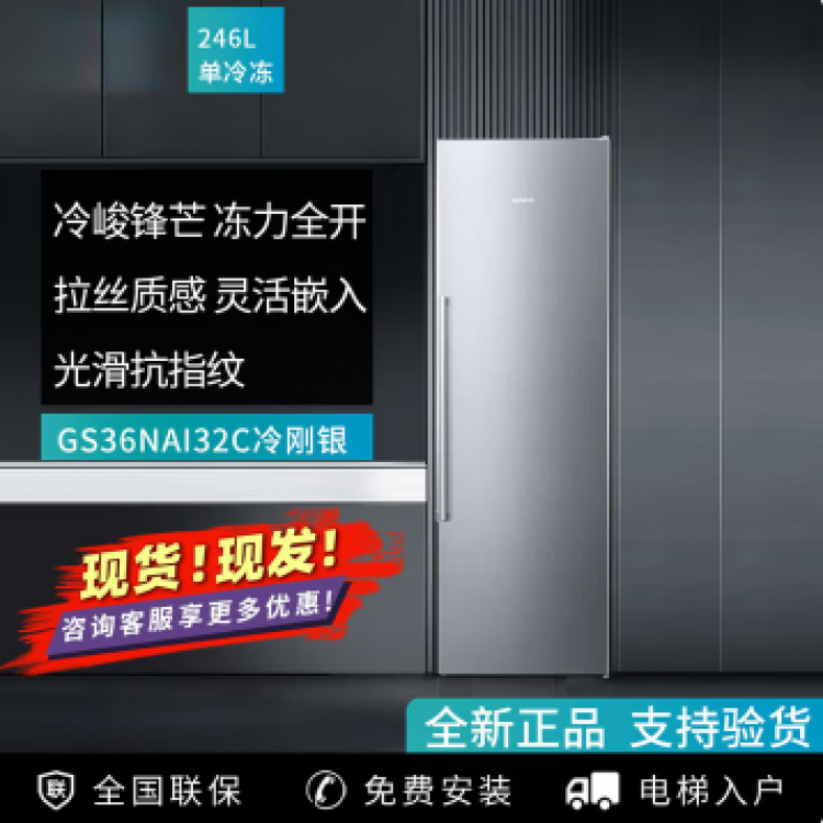 西门子GS36NAI32C原装进口嵌入式单冷冻风冷无霜变频一级能效242L BJ