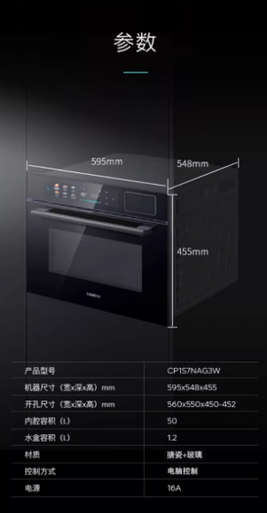西门子曜石700M嵌入式微波蒸烤箱CP1S7NAG3W微蒸烤炸炖煮六合一 BJ