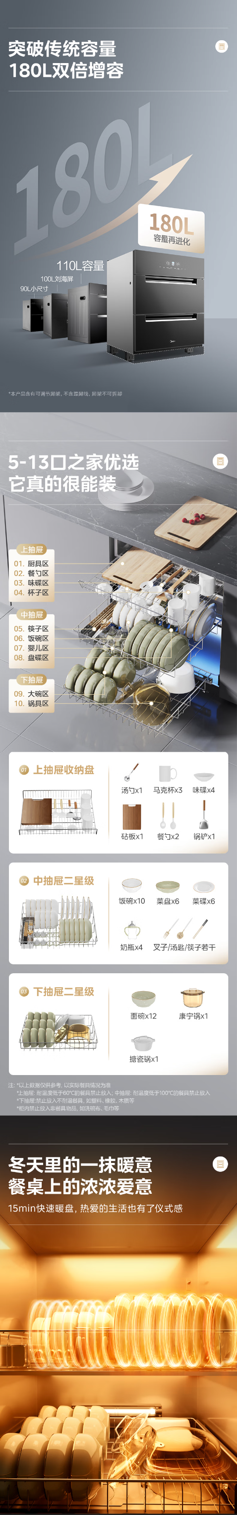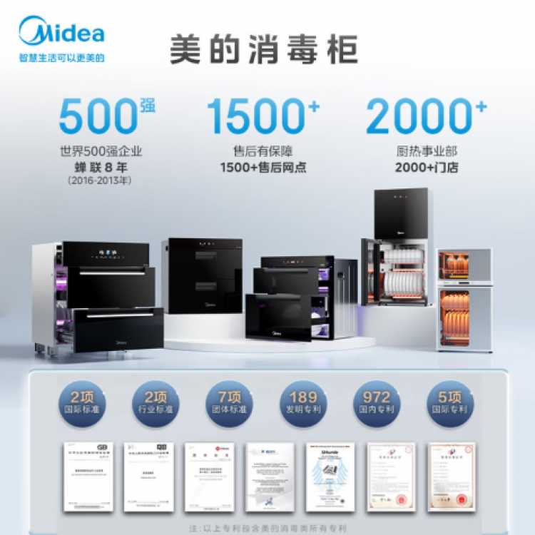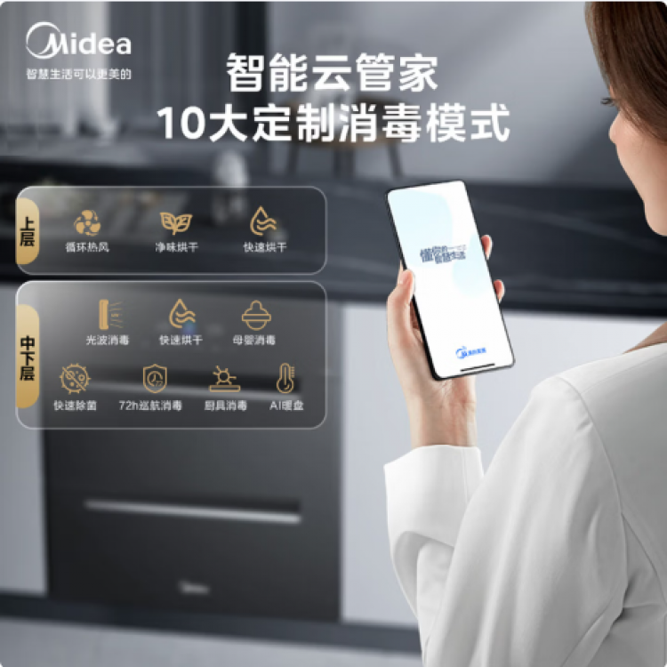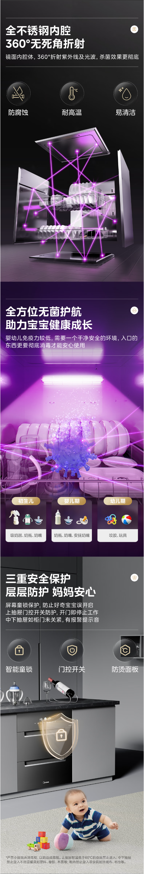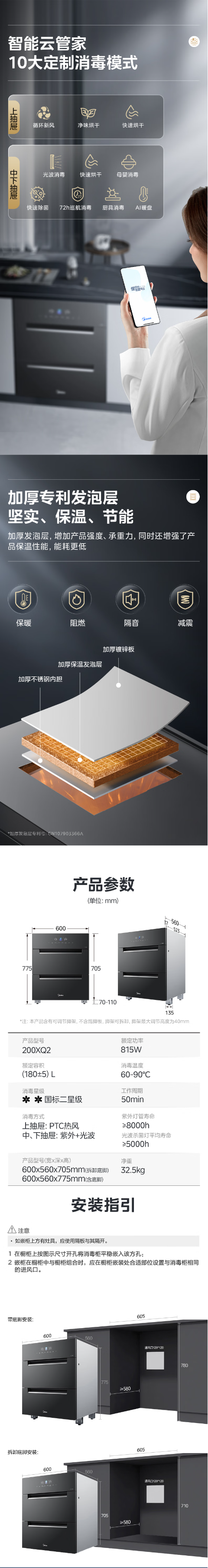 美的(Midea)消毒柜嵌入式家用 厨房餐具碗柜碗筷 180L三层 婴儿奶瓶不锈钢紫外线 200XQ2银河