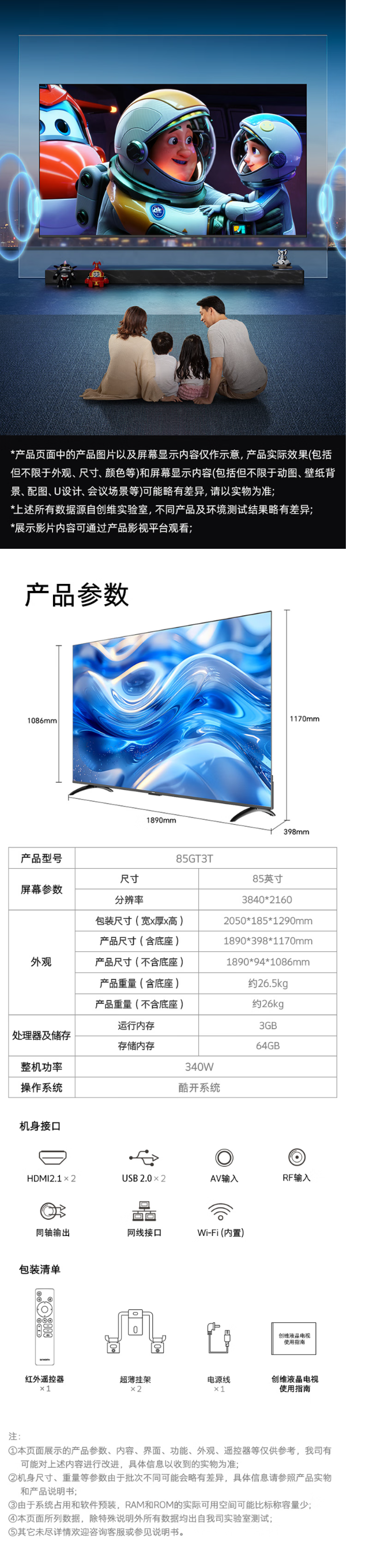 创维85英寸85GT3T 一级节能AI秒懂语音 六重120Hz高刷3+64G大内存不卡顿 健康护眼智能投屏 4K超高清 BK
