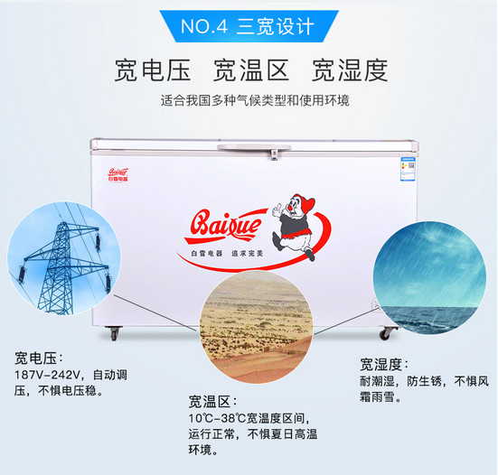 白雪 470升 BD/C-470FD 超大空间,储藏效果佳,宽电压带设计尺寸:1504*720*945mm