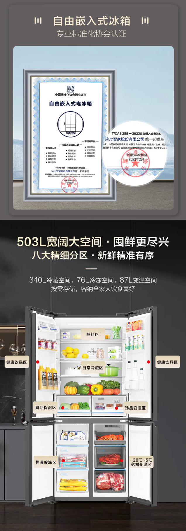 海尔冰箱BCD-503WGHTD45ASU1专业零嵌十字门家用电冰箱 503升一级能效干湿分储 TMBK