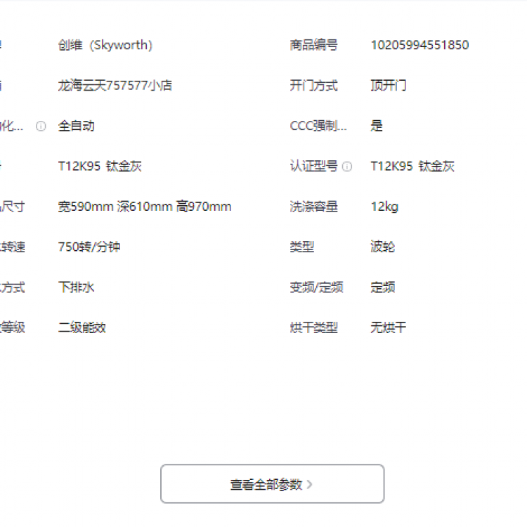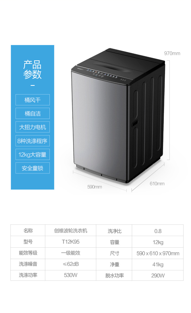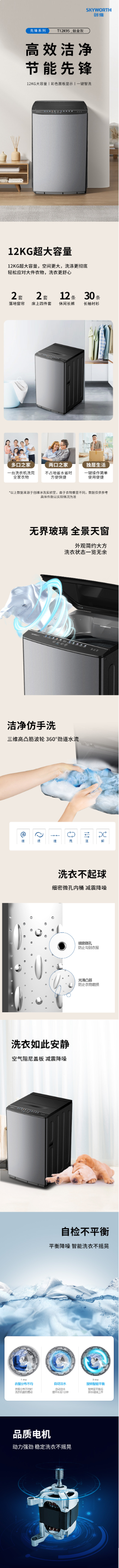 创维 T12K95_钛金灰12KG波轮洗衣机 彩色面板显示 一键智洗 补水自平衡 筒风干 筒自洁BO一键待发