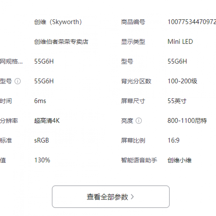 创维55G6H 无缝平嵌内嵌声学2.0 极黑广角类纸屏不反光0眩光 Smart MiniLED高分区高亮度4+64G健康护眼 55英寸 BN