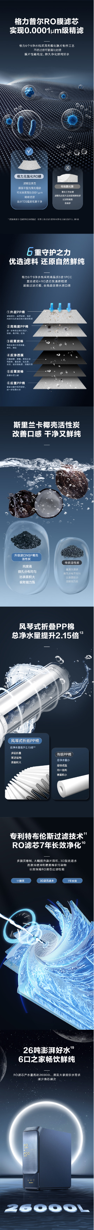 格力净水器 WTE-PT125-2603 家用1000G鲜活零陈水净水机7年RO反渗透厨下式直饮水机 智控屏双出水 BL