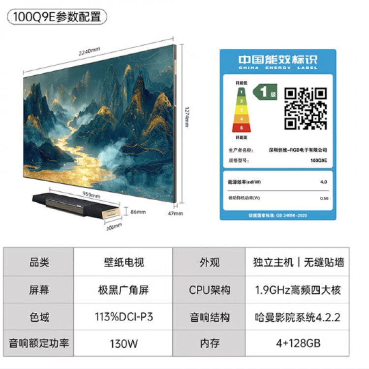 创维创维 100Q9E 中式别墅 创维Smart Mini led壁纸100英寸极黑广角屏Pro 330hz超高刷护眼 BN