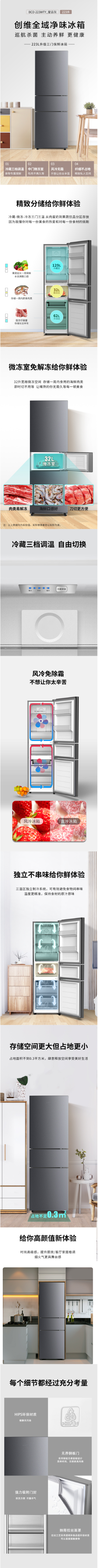 创维 BCD-223WTY_星云灰 冰箱二级能效变频风机三门家用冰箱BO 一键待发