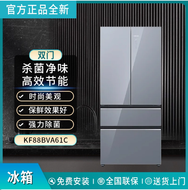 西门子无界平嵌冰箱 KF88BVA61C超薄零嵌504升双循环玻璃门法式 BJ