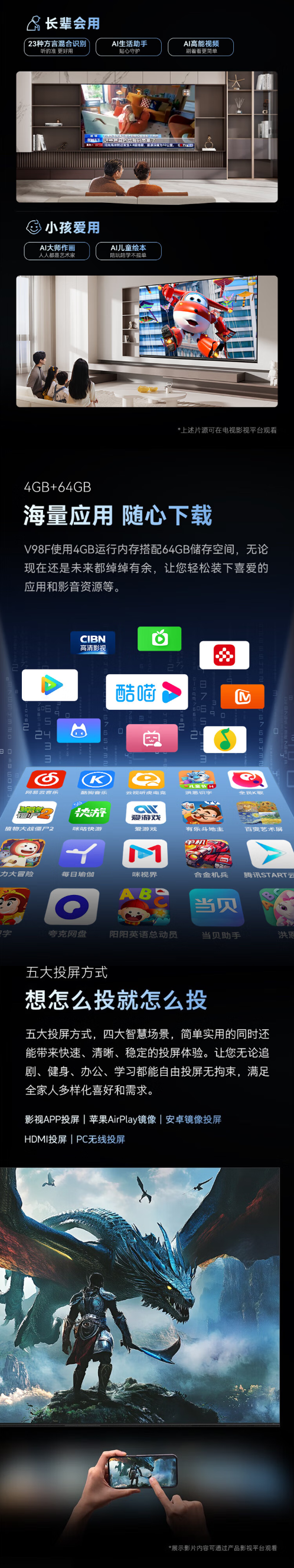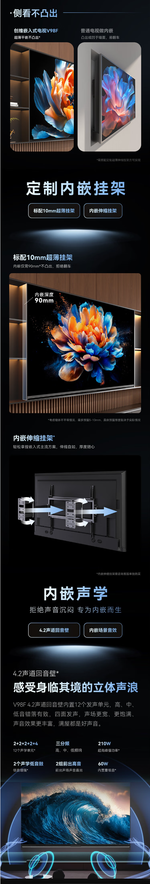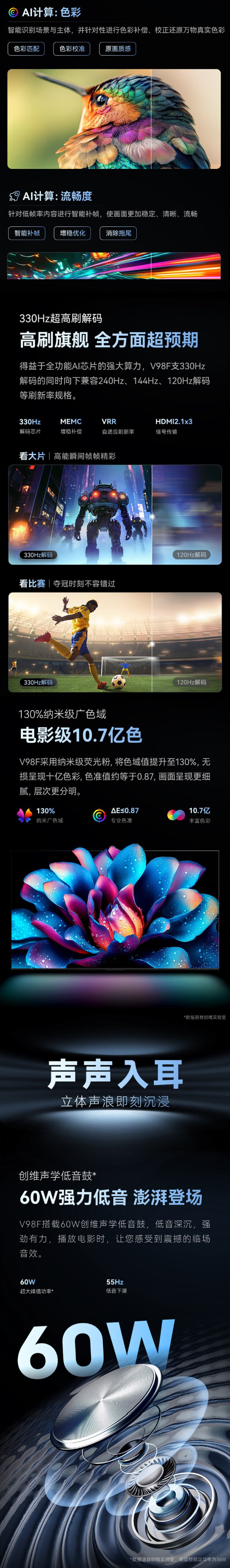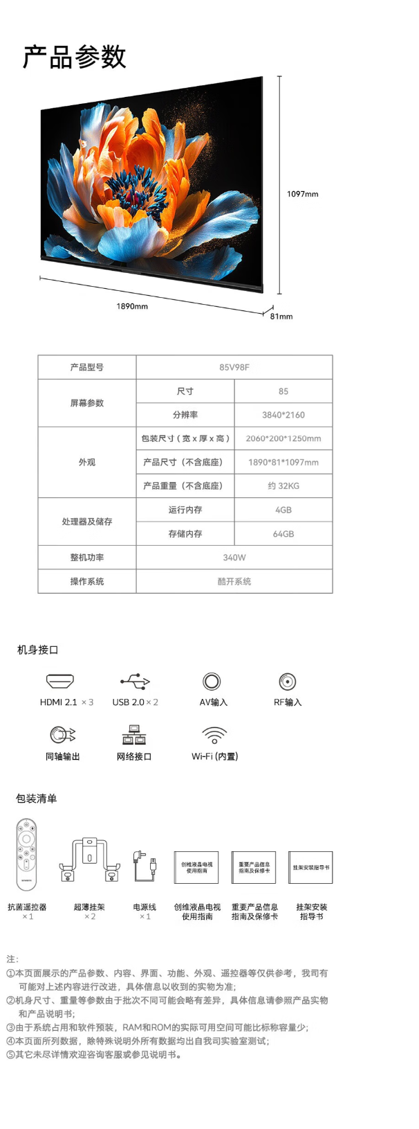 创维 无界云原色智控V98F 平板电视原色智控智慧屏超薄护眼电视机一体机85V98F 85英寸 BK