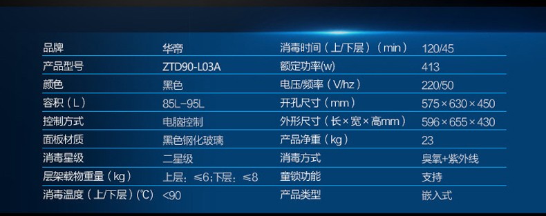 华帝 ZTD90-L03A 家用消毒柜 碗柜 高温二星级 触摸开关 紫外线+臭氧 黑色