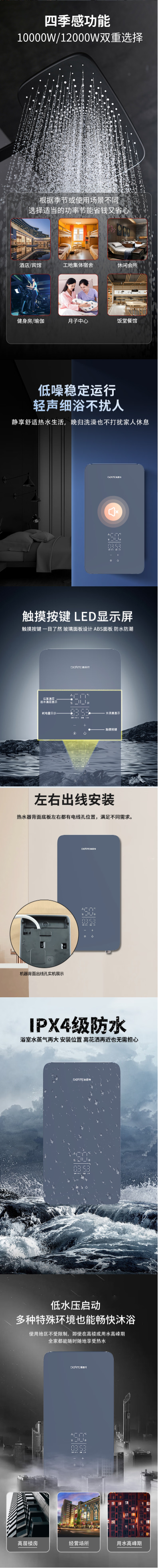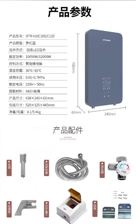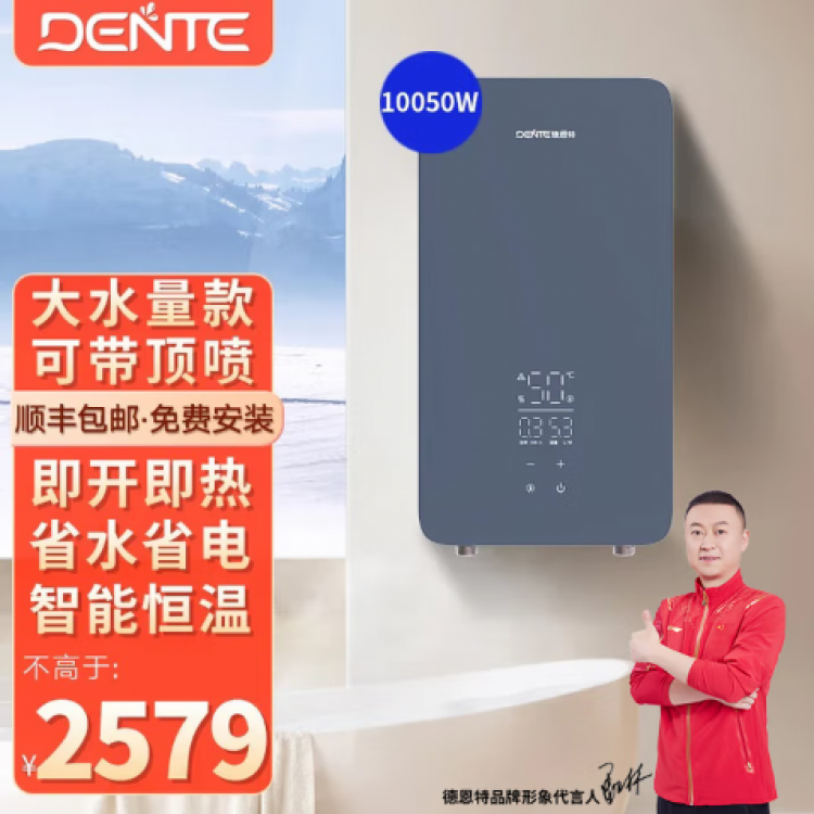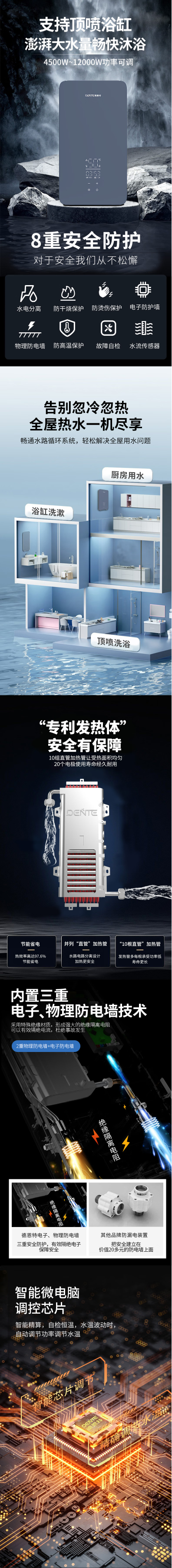 德恩特即热式电热水器V10C100智能恒温小型家用速热洗澡淋浴直热式电热水器 10050W ≥ 6平方线安装 BK