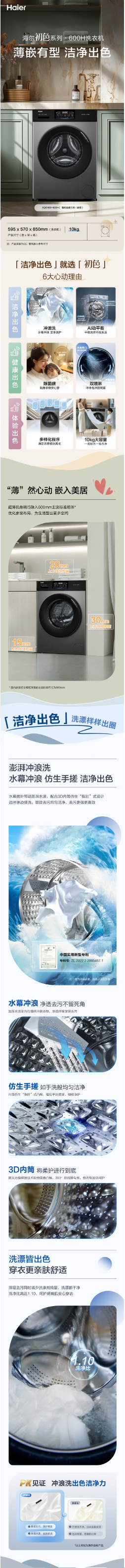海尔XQG100-600H 滚筒洗衣机全自动Al动平衡除菌健康家用洗脱一体机 BN