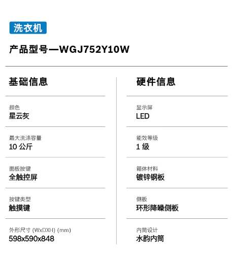 博世 摩德纳 10KG智能投放洗烘套装 变频滚筒洗衣机 蒸汽除皱 深层净洗 冷凝器自清洁 星云灰 WGJ752Y10W BJ