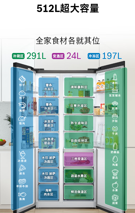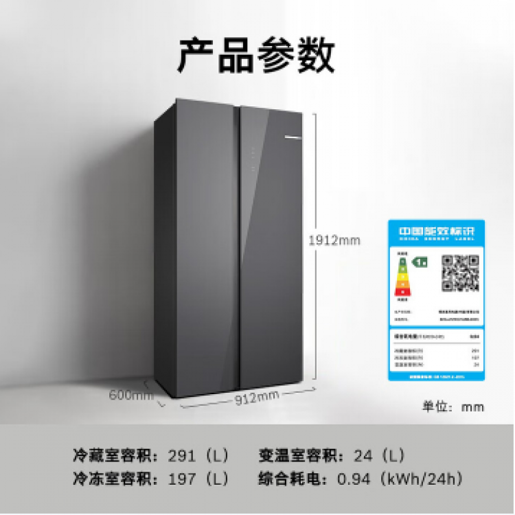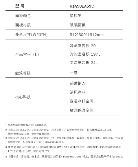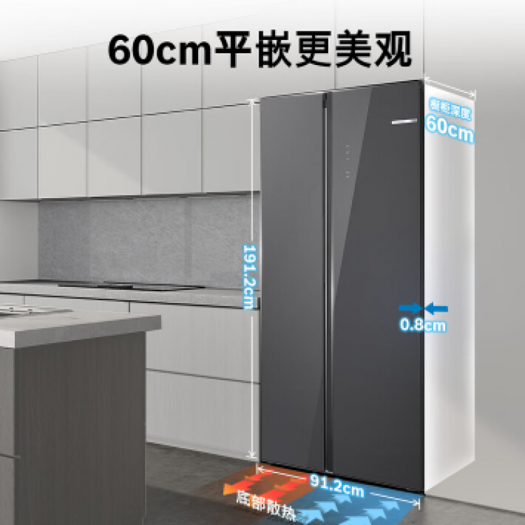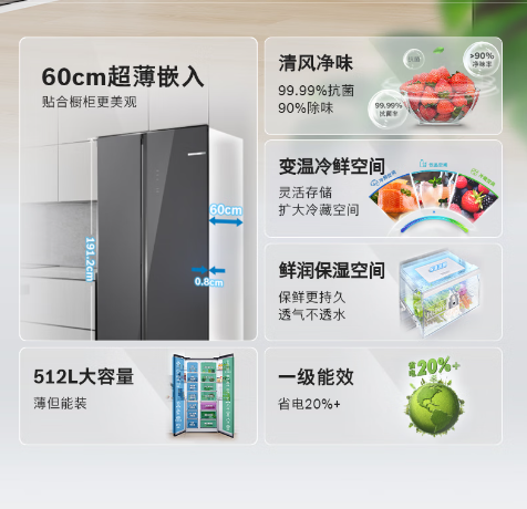 博世(BOSCH)【60cm超薄平嵌】512升大容量双开门对开门变频家用 抗菌除味 变温保鲜 K1A98EA59C BJ