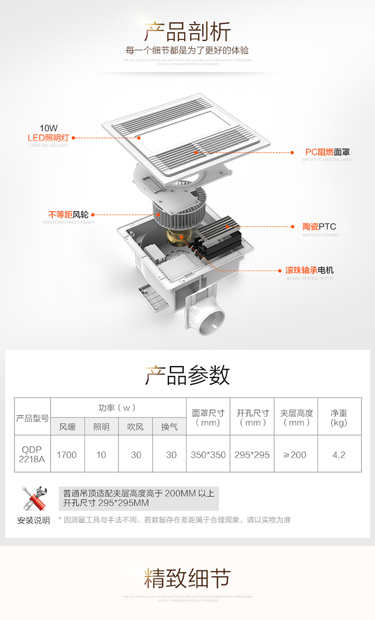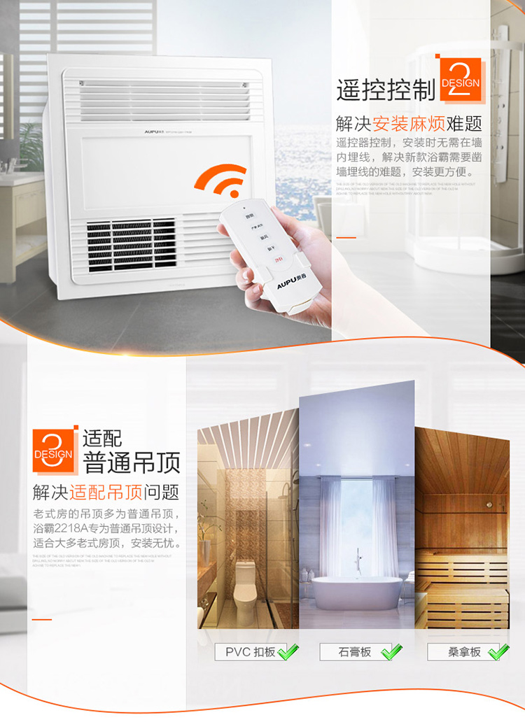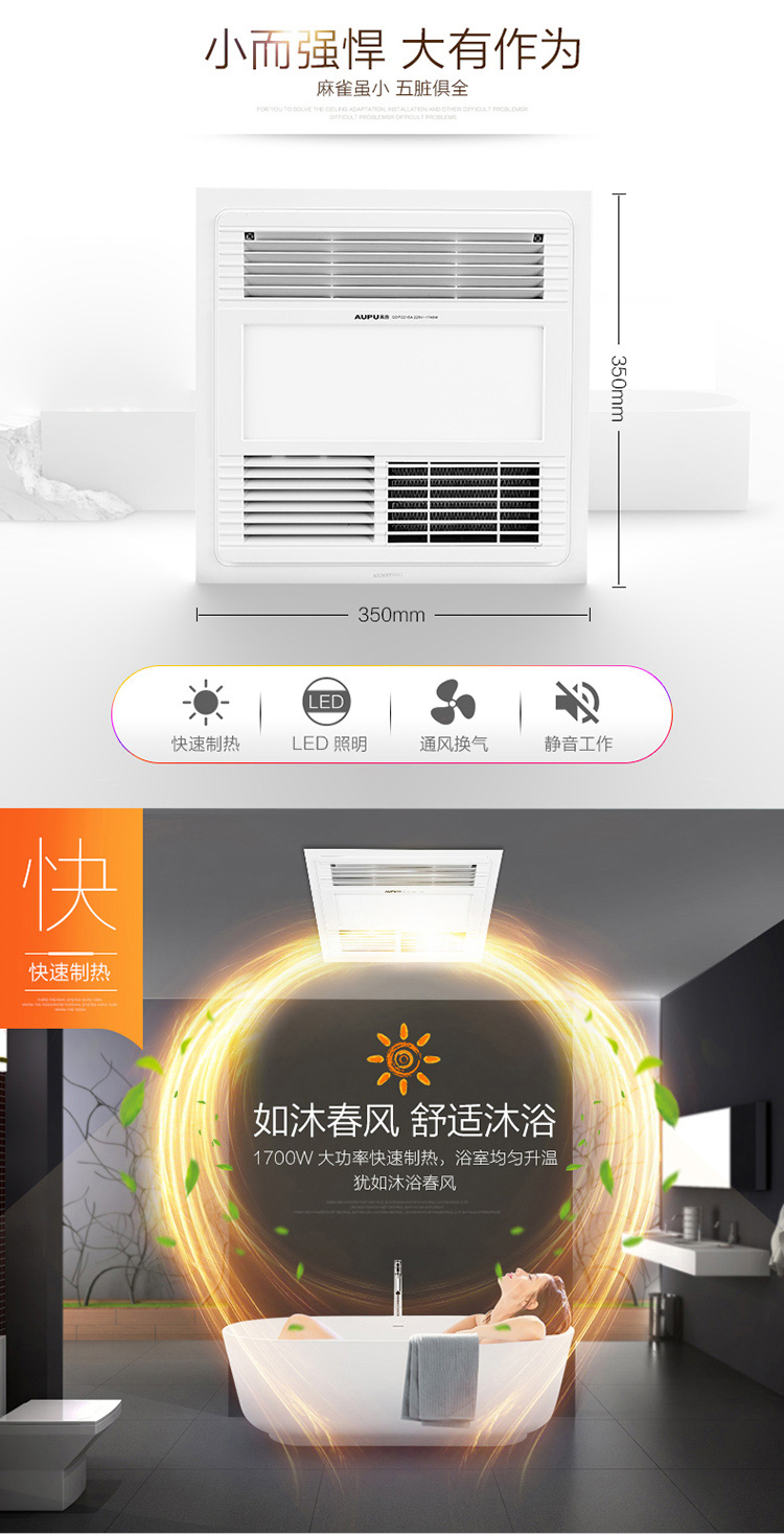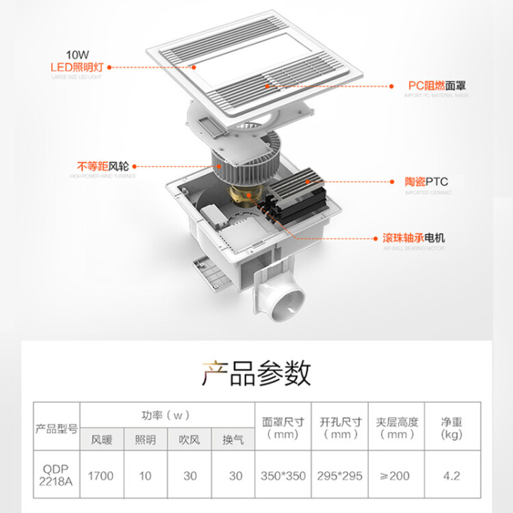 奥普(AUPU)浴霸 QDP2218A 智能遥控风暖浴霸 换气扇LED灯照明 适配普通吊顶 风暖+LED照明+换气+遥控