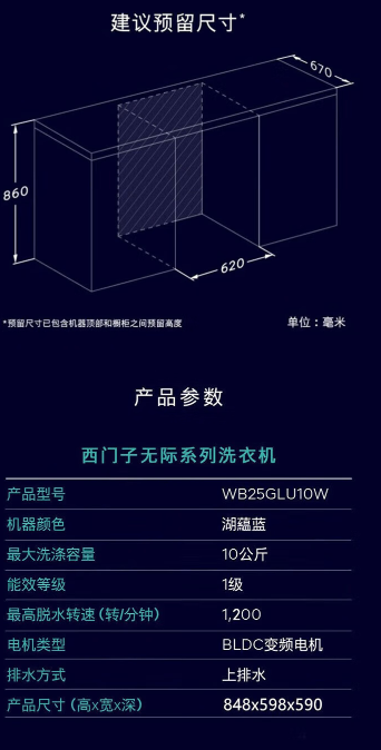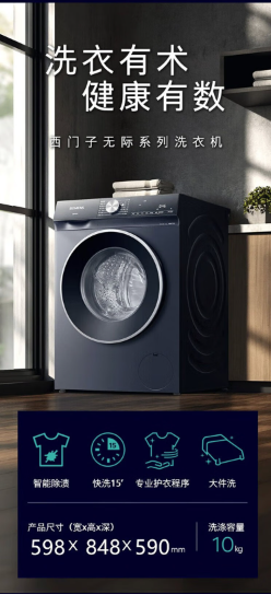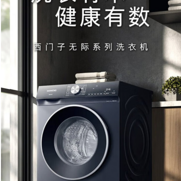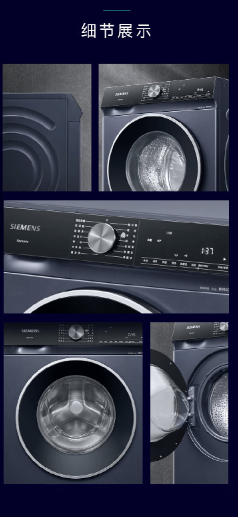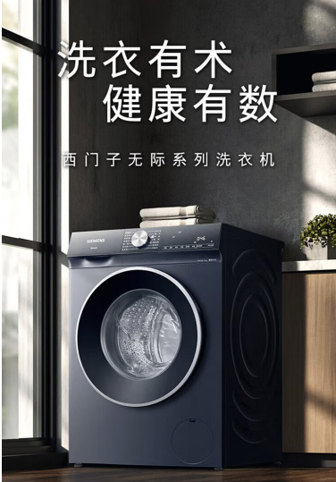 西门子 滚筒洗衣机10公斤家用大容量 一级能效15分钟快洗大件洗除螨 智能除渍 无际系列WB25GLU10W湖韵蓝 BJ
