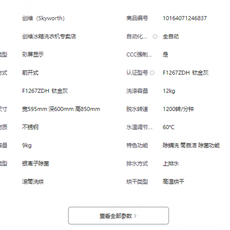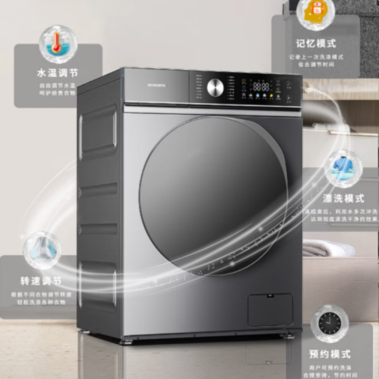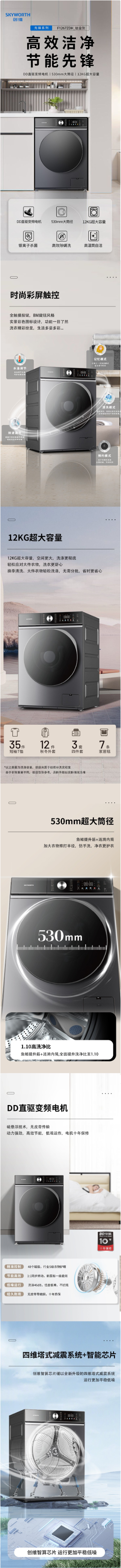 创维 F1267ZDH_钛金灰先锋系列12KG滚筒洗烘一体洗衣机 DD直驱变频电机 超薄大筒径 银离子杀菌BO 一键待发