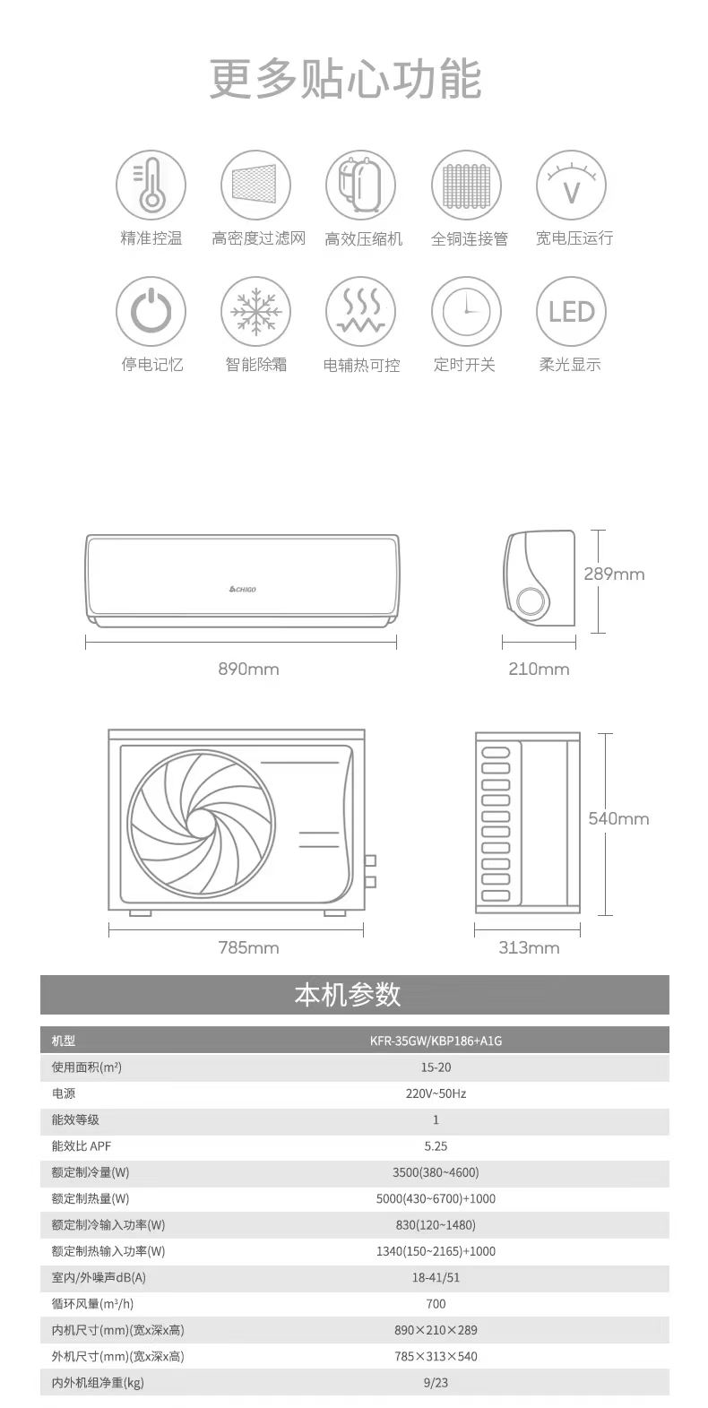 志高1.5匹 KFR-35GW/KBP186+A1G 志高大1.5匹冷暖变频【1级能效】BJ
