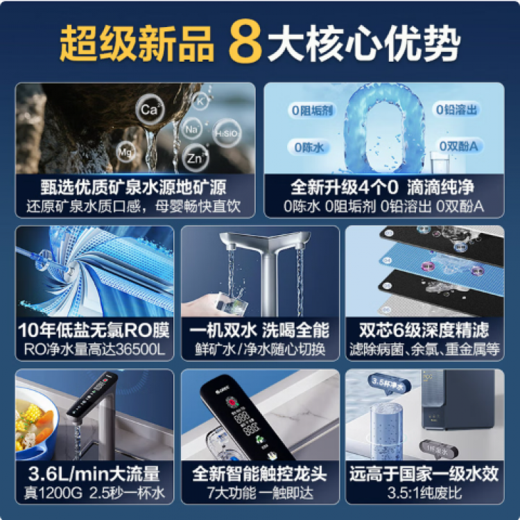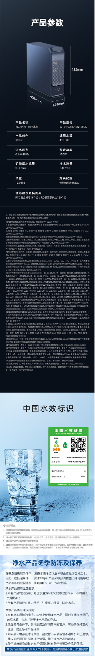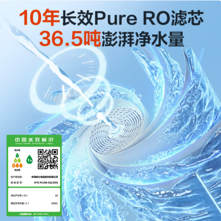 格力净水器鲸涛 WTE-PC180-2Q1200S锌矿净饮机厨下家用净水机10年RO膜0阻垢剂矿物质直饮水机CA