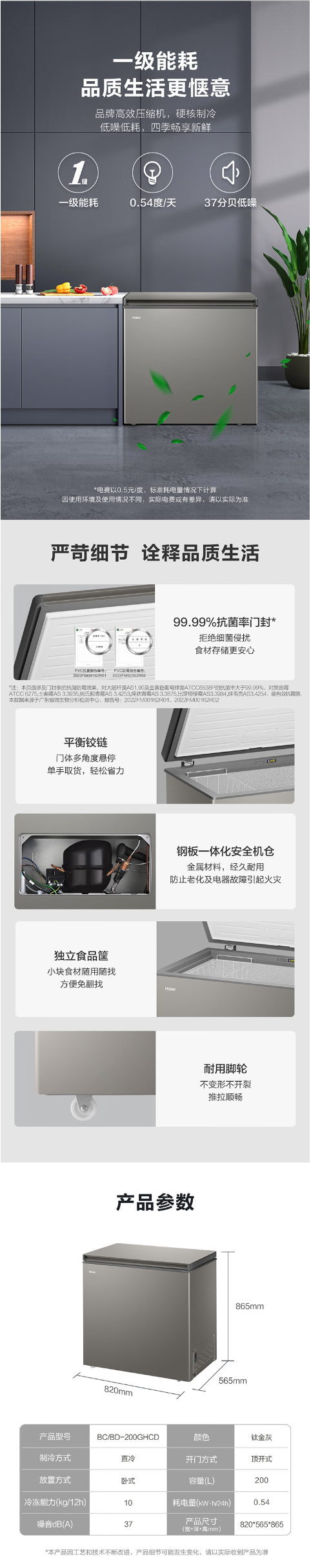 海尔(Haier)BC/BD-200GHPCD 冷柜200升一级能效低霜家用商用冷藏柜冷冻柜小冰柜小型冷柜小冰箱 MYX BM