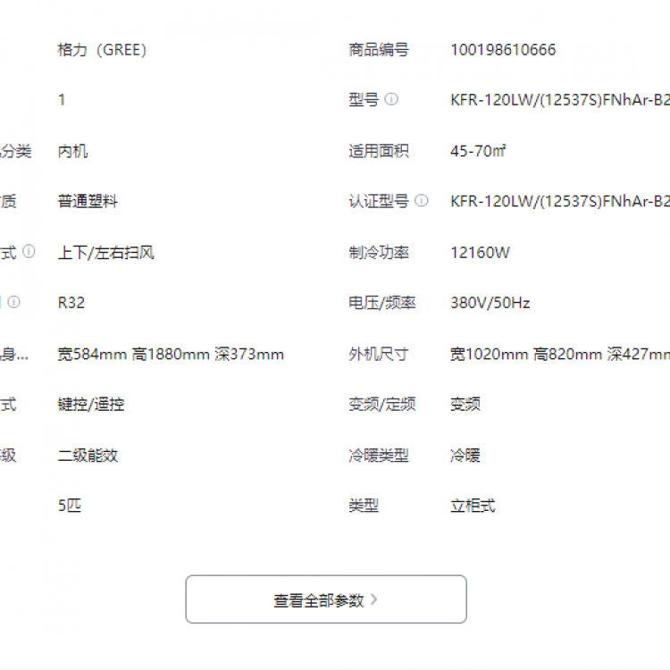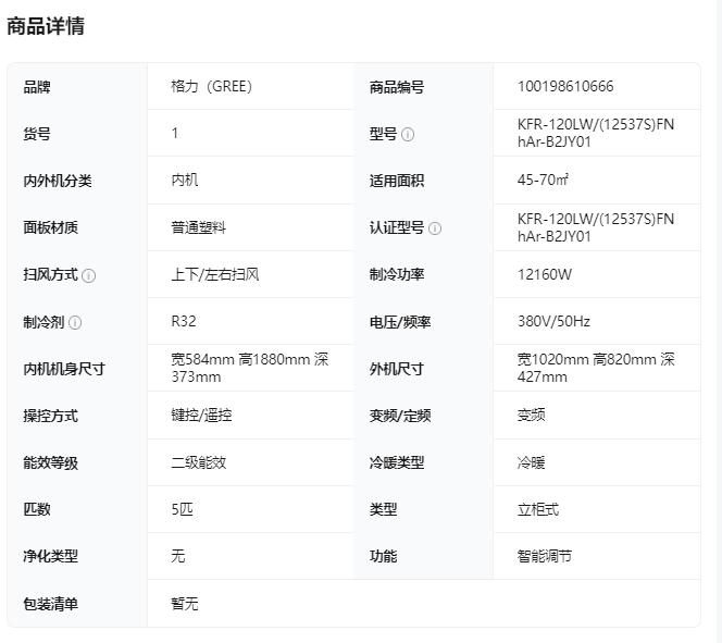格力空调KFR-120LW/(12537S)FNhAr-B2JY015匹柜机清享风变频冷暖二级能效380V商用立柜式空调大风量BN