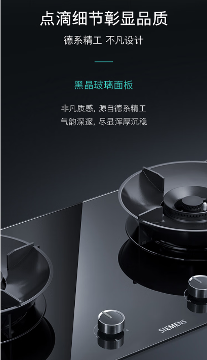 西门子钢化玻璃同时加热嵌入式5.2 Kw大火ER82A3VDMP 电磁炉 ,63%热效率,湖韵蓝玻璃面板 BJ