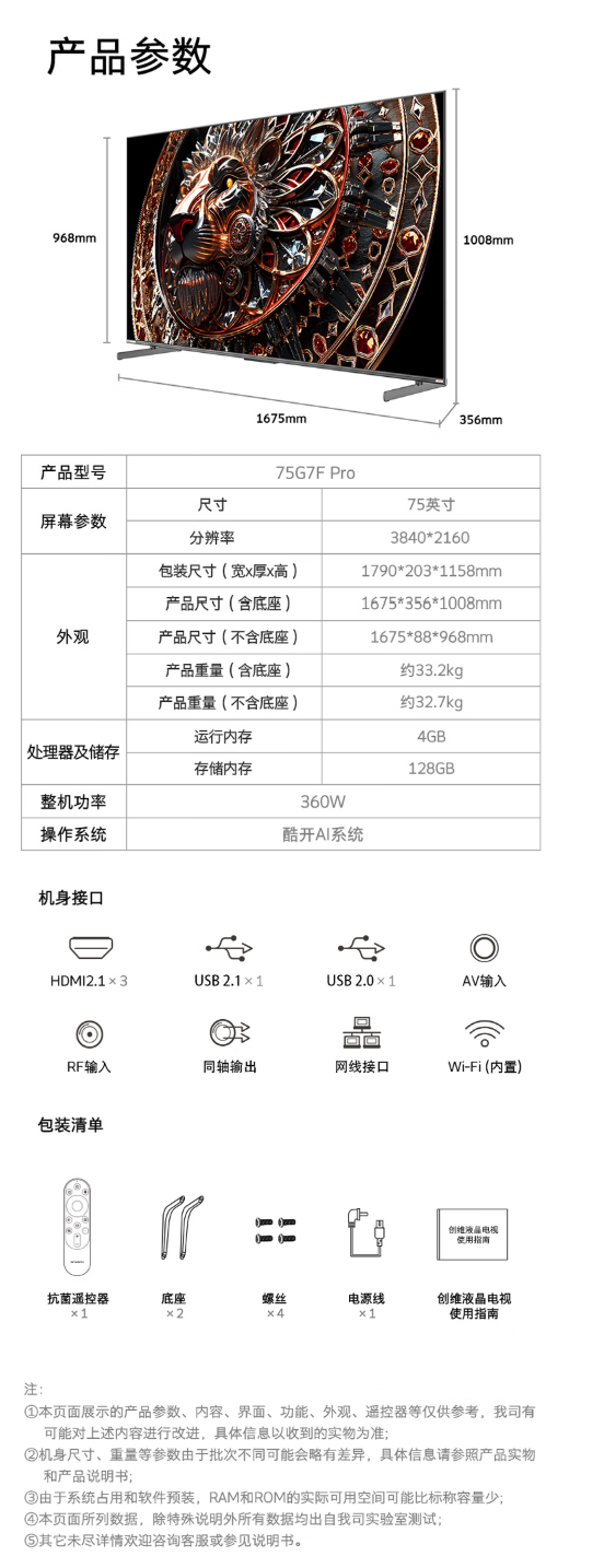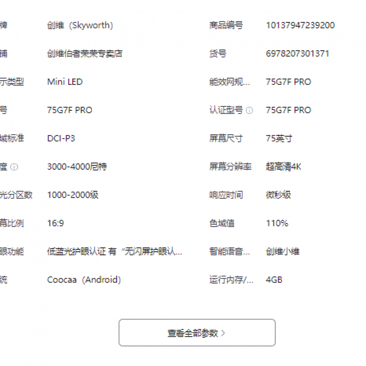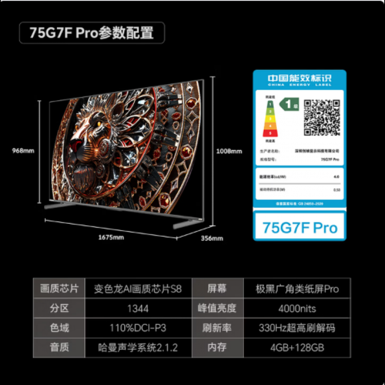 创维75G7F Pro极黑广角类纸屏 Smart MiniLED千级分区控光+哈曼2.1.2 广色域110% 高刷帧享影院4+128G 75英寸BN