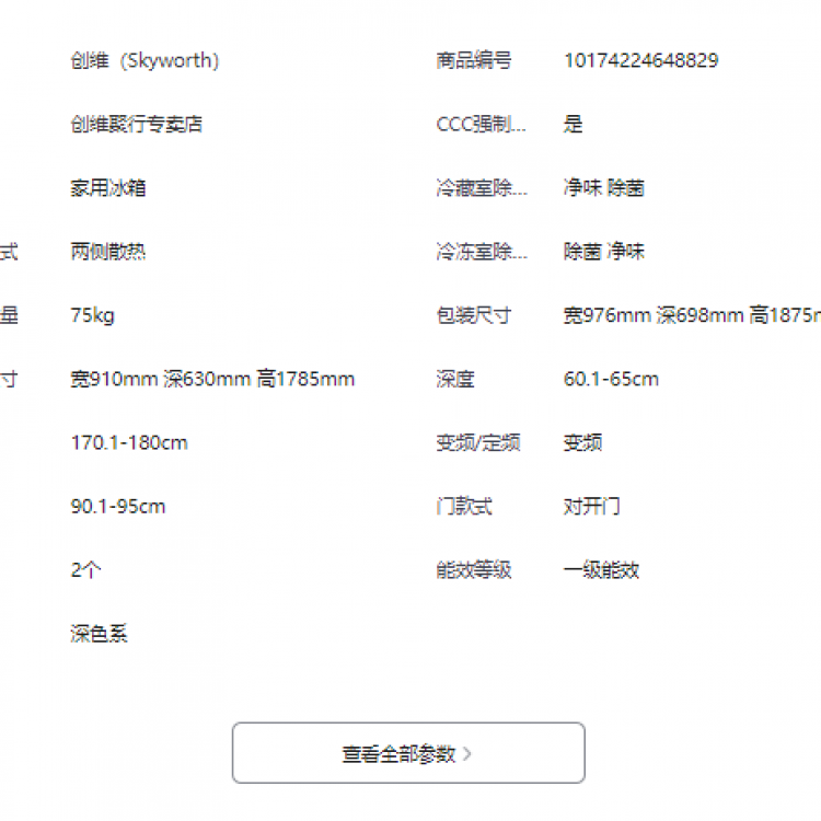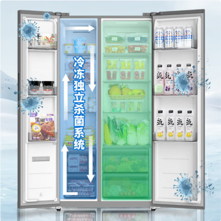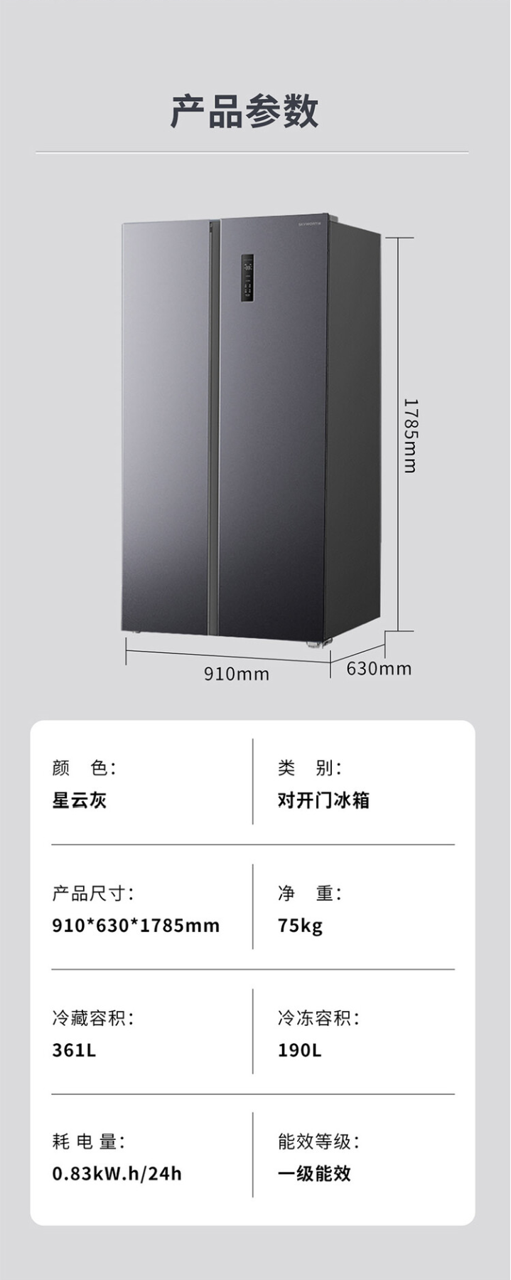 创维 BCD-551WKPSA 星云灰鲜活系列 551L家用对开门冰箱 Nano Ag+杀菌离子 -32深冷速冻 一级能效BO一键待发