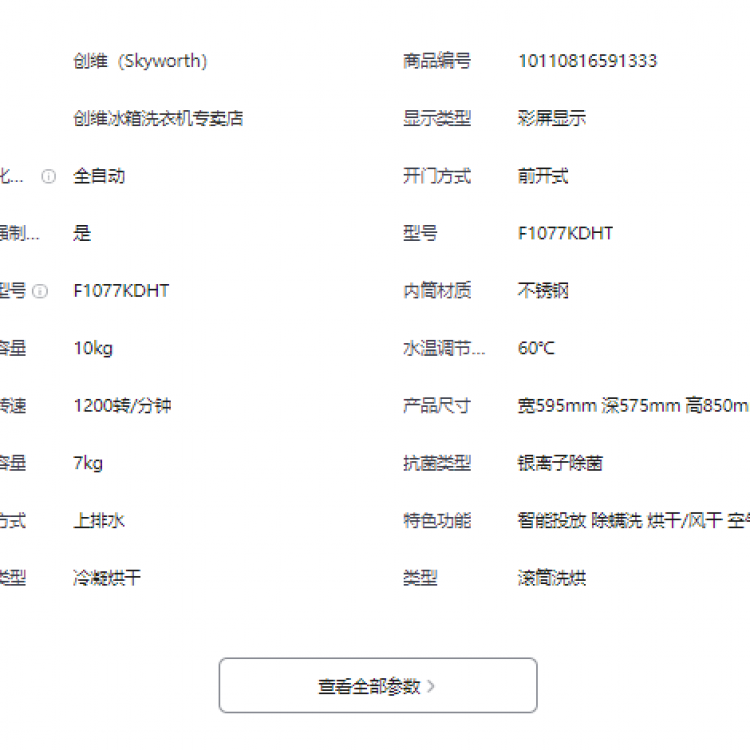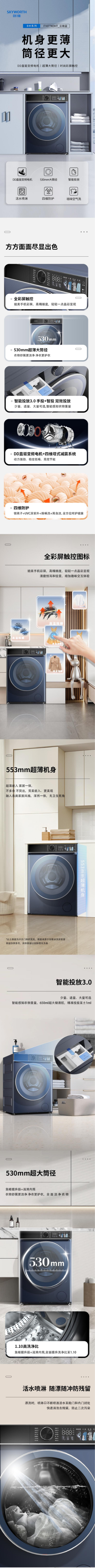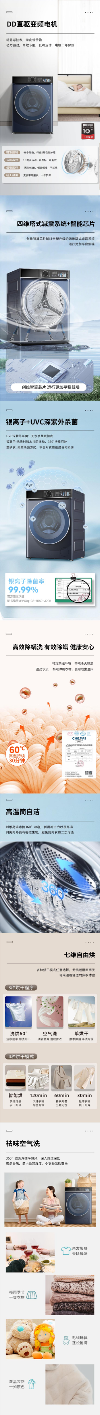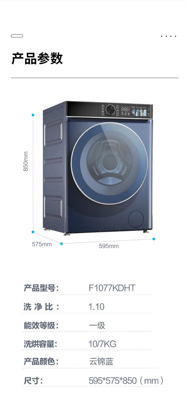 创维F1077KDHT云锦蓝 BM系列10KG洗烘一体滚筒洗衣机DD直驱变频电机 超薄大筒径 四维除菌 一级能效BO一键待发