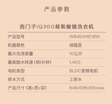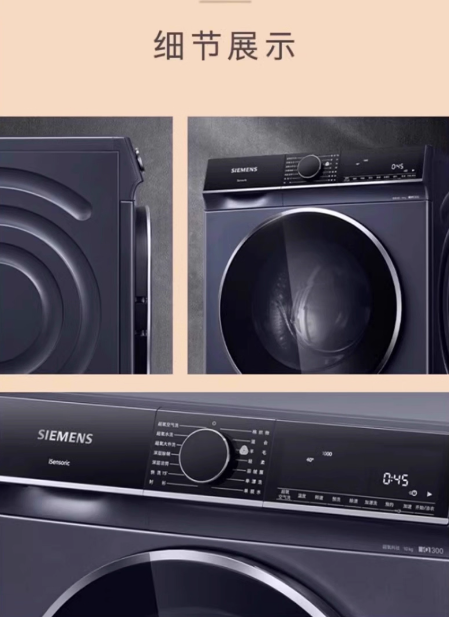 SIEMENS/西门子WB45XME18W超氧除菌10公斤智能除渍洗 新品,湖蕴蓝,带超氧除菌 BJ