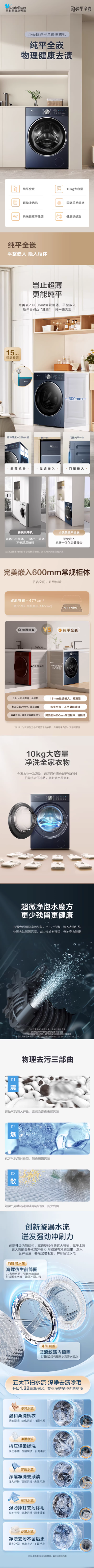 小天鹅TG10MC3PRO 智能投放洗衣液更少残留更健康 10KG纯平全嵌滚筒洗衣机纳米银离子除菌 BO