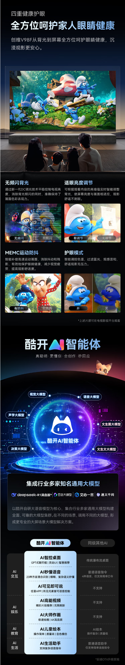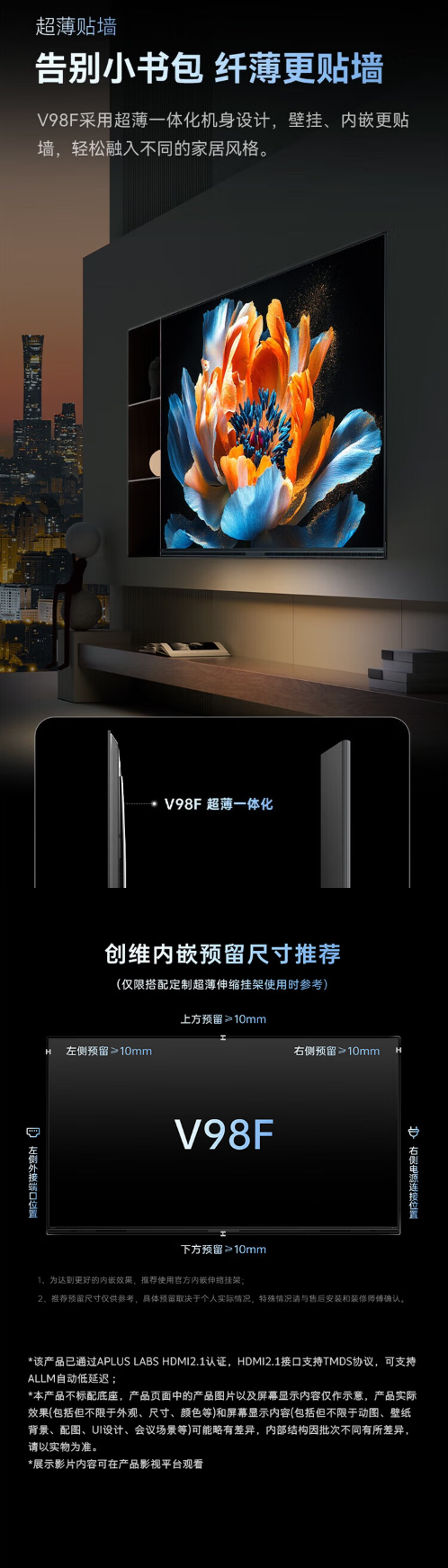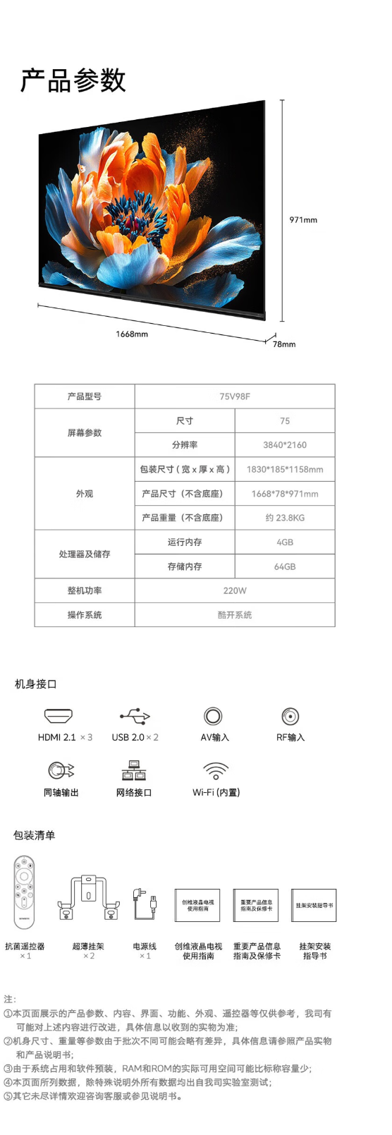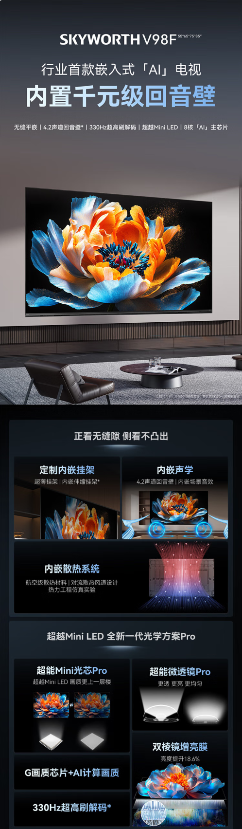 创维 无界云原色智控V98F 平板电视原色智控智慧屏超薄护眼电视机一体机75V98F 75英寸