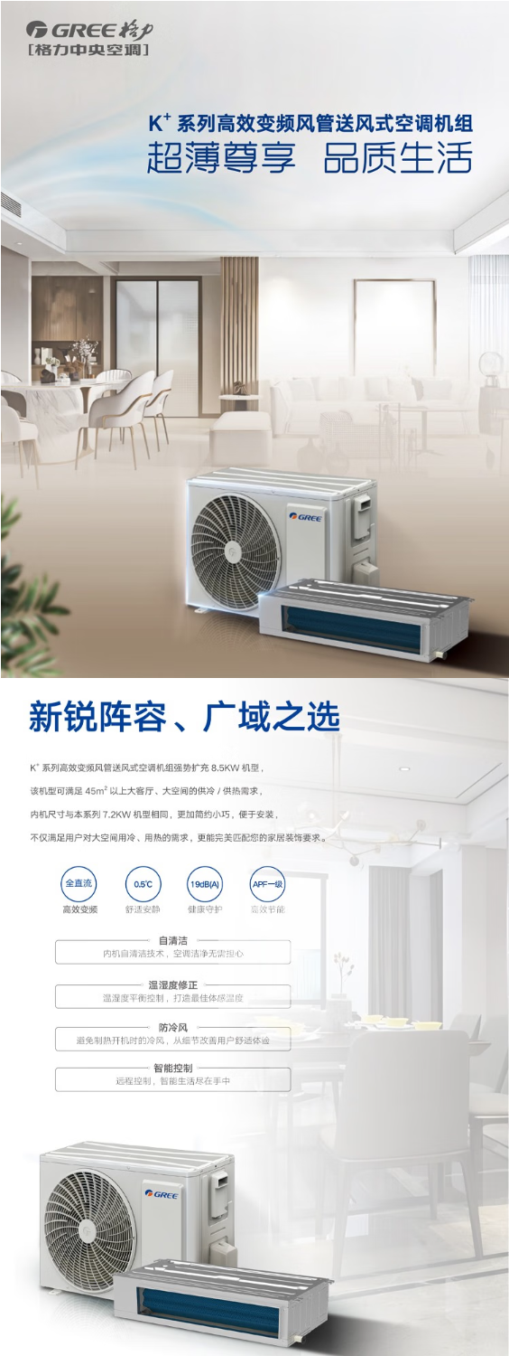 格力 3匹 FGR7.2Pd/KNh-N1 K+风管机 3P 中央空调 冷暖变频 超一级能效(包安装标配线控含8米内铜管)