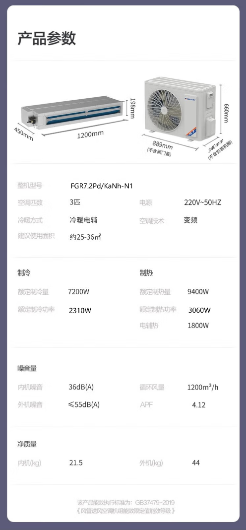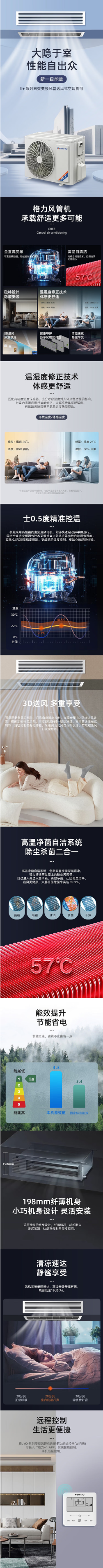 格力3匹 FGR7.2Pd/KaNh-N1 天花机K+系列 一级能效一拖一风管机 高温自洁 升级彩屏WIFI线控器