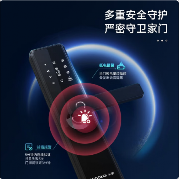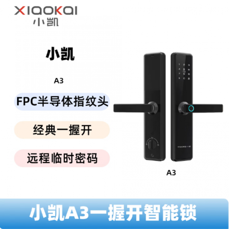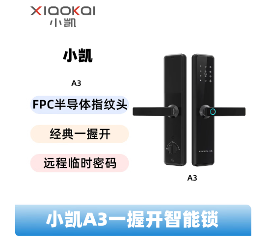 小凯(xiaokai)A3智能门锁远程临时密码解锁半自动指纹锁一握即开智能锁 BO