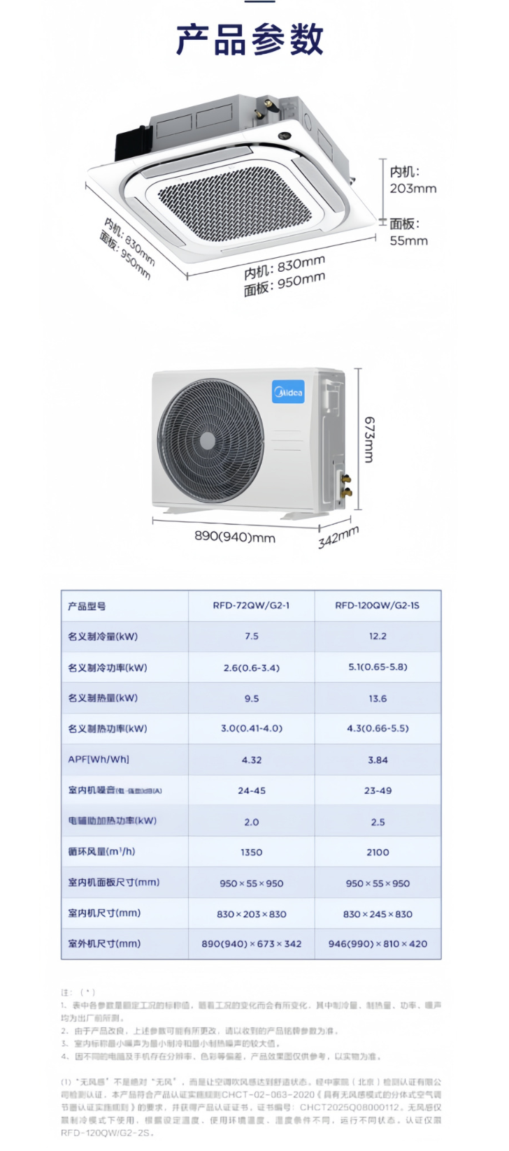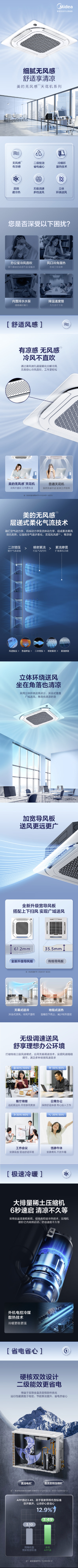 美的 2匹无风感天花机 KFR-51QW/G2-2变频冷暖立体环绕 220V 变频