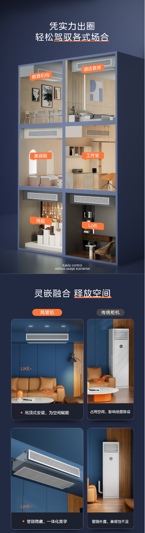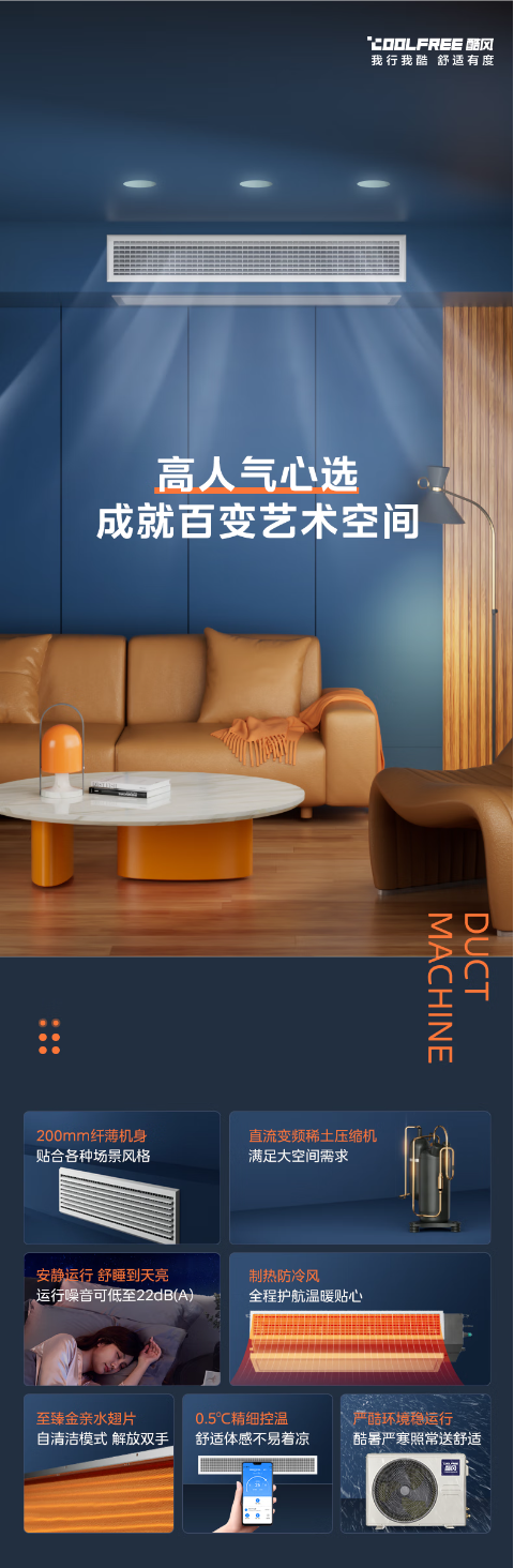 美的酷风风管机 四代 KFR-72T2W/BD-CF(1)Ⅳ 3匹 一拖一(包安装标配遥控含8米内铜管) BK