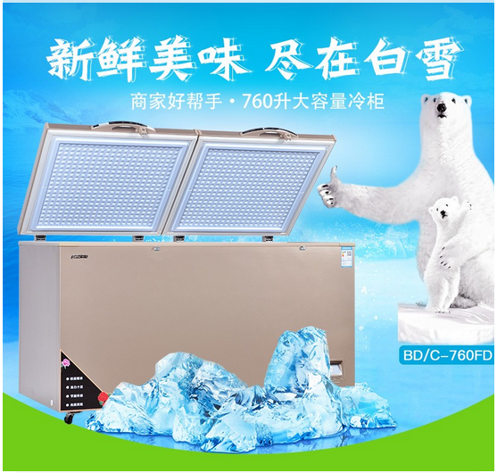白雪 760升 BD/C-760FD 冰柜大容量 商用卧式顶开门冷冻柜 单温保鲜冷藏柜