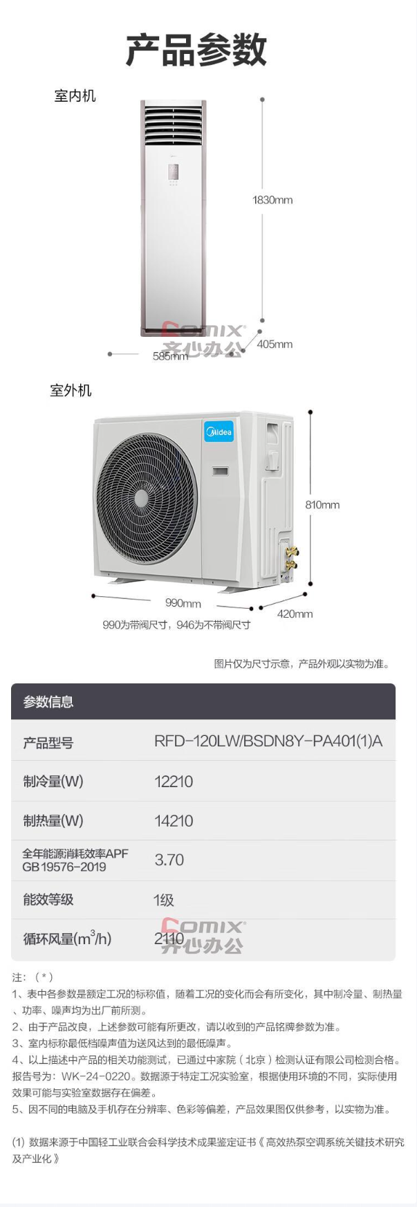 美的(Midea) RFD-120LW/BSDN8Y-PA401(1)A 柜式冷暖空调 5匹一级能效380V