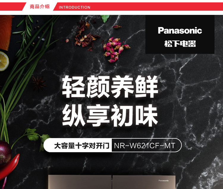 松下冰箱 628升 NR-W621CF-MT 大型十字对开门冰箱 纳诺怡去味杀菌 宽幅变温微冻保鲜 迷雾棕